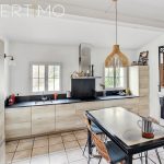 La maison séduit par ses volumes généreux et sa luminosité. La pièce de réception, exposée plein sud, offre une atmosphère chaleureuse avec cheminée et poêle à granulés. La cuisine indépendante, prolongée par un vaste cellier, allie élégance et fonctionnalité.